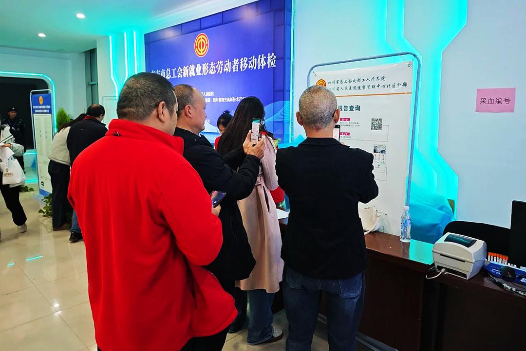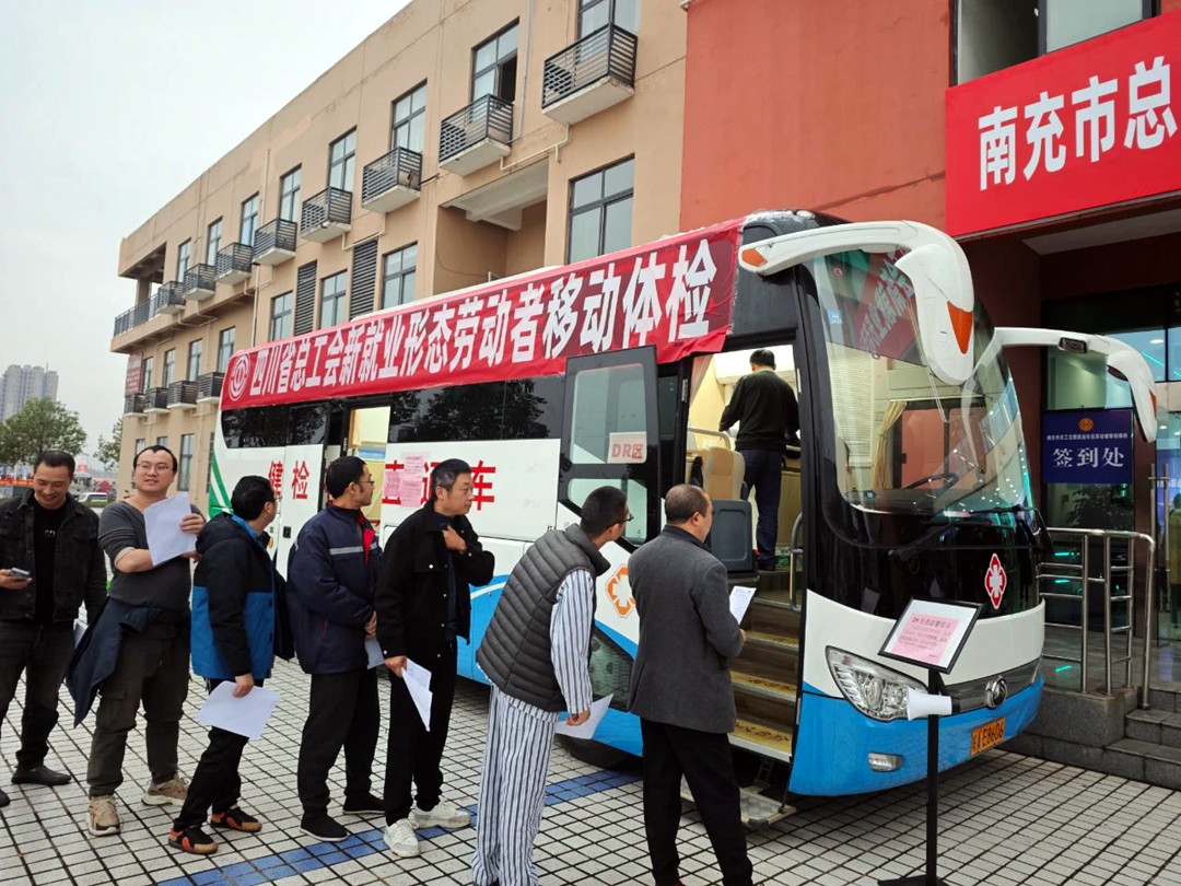 11月23日至29日,四川省總工會成都工人療養(yǎng)院移動體檢車開到南充現(xiàn)代物流園、南充高新技術(shù)產(chǎn)業(yè)園站點,為1380余名貨車司機、網(wǎng)約車司機、快遞員、外賣配送員、電商從業(yè)者等新就業(yè)形態(tài)勞動者提供免費健康體檢和健康咨詢服務(wù)。