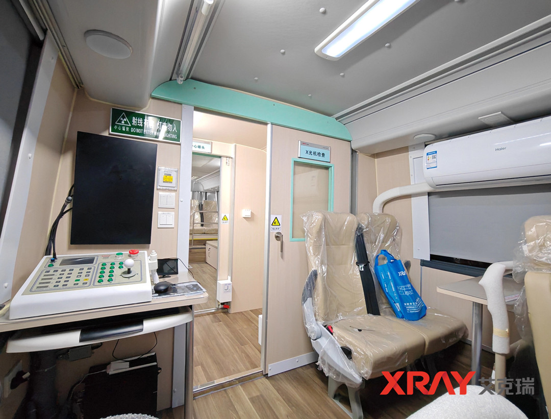 這臺體檢車由深圳艾克瑞生產(chǎn)交付,車長8.2米,車內(nèi)載有艾克瑞車載X光機(jī)、醫(yī)用檢查床、冷暖空調(diào)等設(shè)備設(shè)施??梢詾槿藗兲峁┌踩咝П憬莸纳祥T體檢服務(wù)。